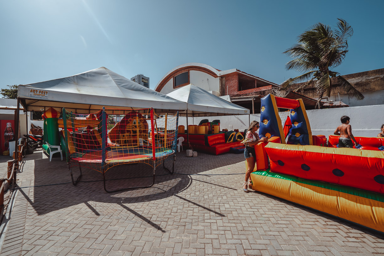 O Praiano também conta com área kids com brinquedos infláveis e monitores acompanhando a criançada (valor R$15,00). O cardápio é bem variado.